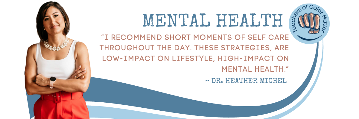 My continued purpose in the field of education is to support Teachers of Color where they are in their careers. I’ve often wondered if I would have stayed in teaching if I had been coached to incorporate mental health strategies into my own life. I wonder if what I`ve learned and continue to apply to my coaching clients and mentees would have saved me from leaving the classroom. I can’t say for sure, but I do know that over the course of my career I’ve come back to five mental health strategies that have sustained me in any educational position. To learn more about these strategies, check out my mental health tap in the navigation bar.
